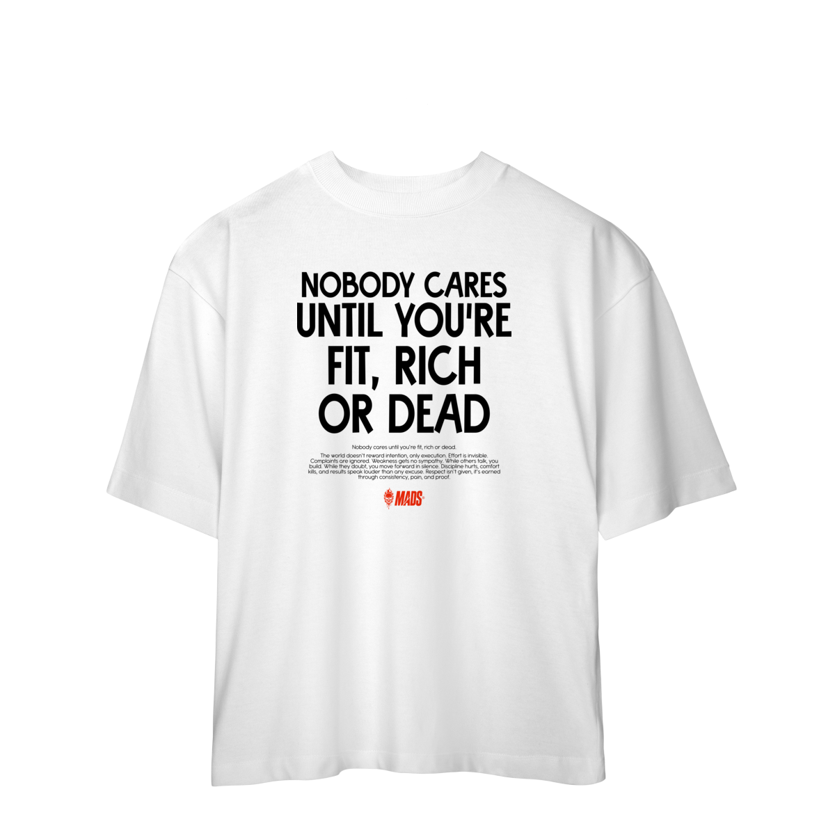 Feita para quem vive o treino dentro e fora da academia. A Oversized MADS combina conforto extremo, corte estruturado e presença marcante — o equilíbrio perfeito entre estilo e performance.